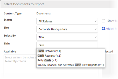 - To quickly add all documents from the list, click Add All From [Select By item].