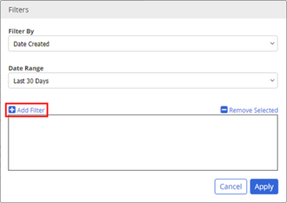 - (Optional) To add one or more date-related filters to narrow a long list of documents, click Add Filter(s), in the Filters dialog box, do any of the following, and then click Apply.