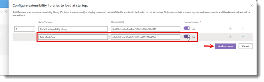 Select the toggle to turn the Enabled/Disabled status on, and then select Add and Save.