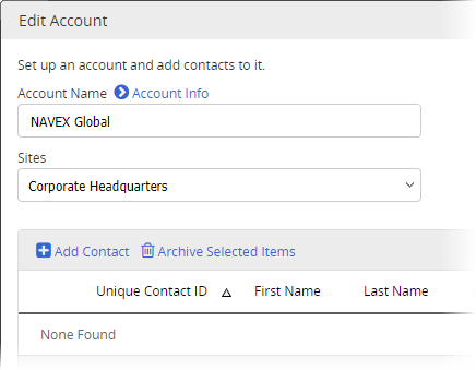 (Optional) Repeat steps 4 through 7 to add other contacts to this account.