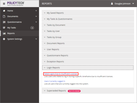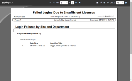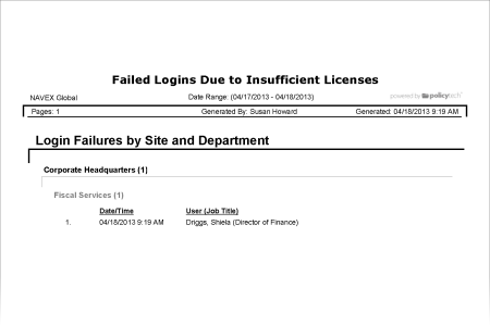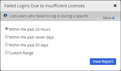 - Click Login Reports, and then click Failed Logins Due to Insufficient Licenses.