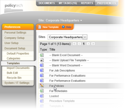 - If the template is currently closed, click PREFERENCES, click Document Settings, and then click Templates. Click the template you want to add HTML content to, and then click Edit Document.