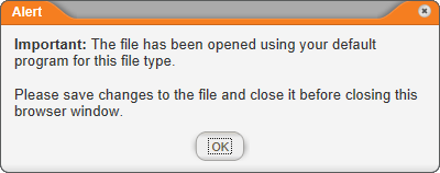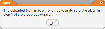 - An alert appears stating that the uploaded file has been renamed to match the template title you typed in the first step of the Properties Wizard. Click OK.