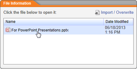 Note: If ever needed, you can import another and replace the currently uploaded file's contents. See Importing Content (Template) for details.
