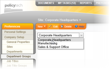 - If multiple sites exist, click the currently selected site name, and then click the site to which you want to add a department group.