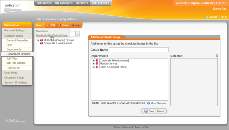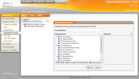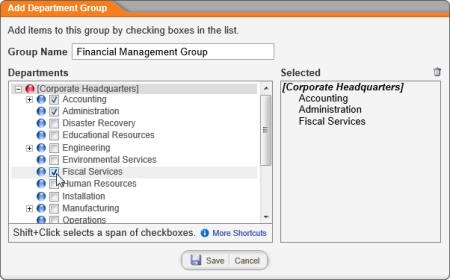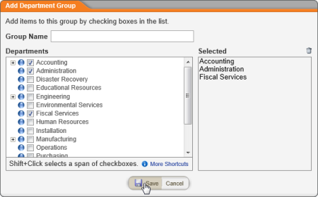 - Select the departments to include in the group, and then click Save.
