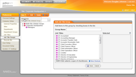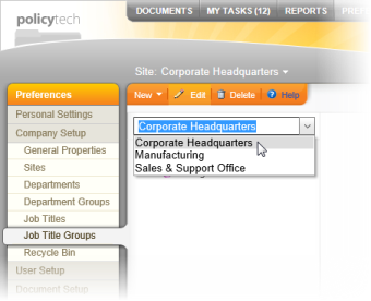- If multiple sites exist, in the site list, click the site to which you want to add a job title group.