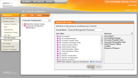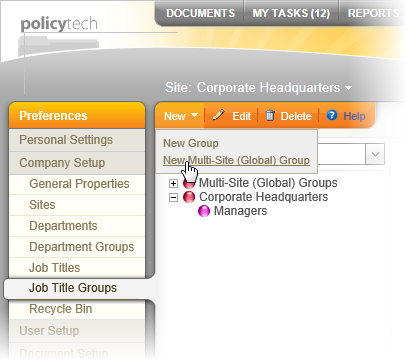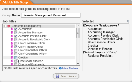 When adding a job title group, you can include job titles from a single site, or you can create a multisite group.