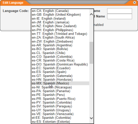 Note: Only one language file can be linked to any given language code. If a code has already been assigned to another language file, it will not appear in the Language Code list for this language file.