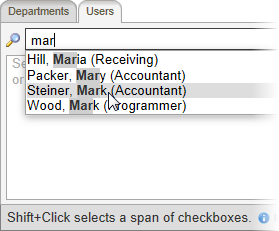 - Do any of the following to select departments, users, or both: