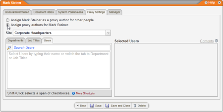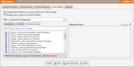 Note: Proxy authors can only be assigned to users assigned the document owner role.