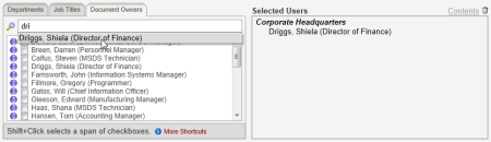 2. Find and select the document owner using one of the following methods: