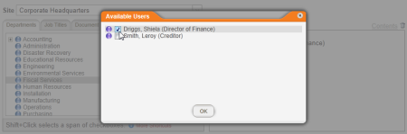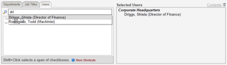 Note: To remove a selected name, click it in the Selected Users box, and then click .