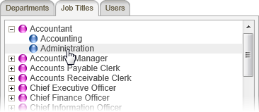 - Click Job Titles and then click a job title to display all users assigned that title. If the job title is assigned to multiple departments and you want only those users from a specific department, click