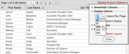 - In the Users Per Page list, click 20, 50, 100, 250, or 500.