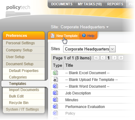 - For Document Type box, click Word Document, HTML Document, Excel Spreadsheet, or Upload a File.