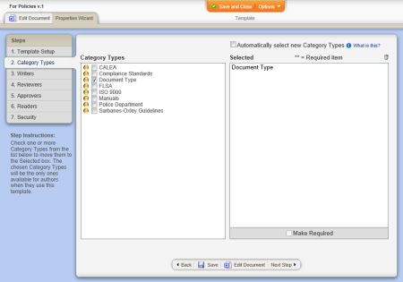 - Click Save to display the remaining workflow steps and enable the Edit Document tab.