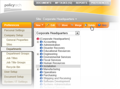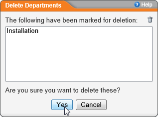 Note: Deleting a department places it in the Recycle Bin. See The Recycle Bin for details on restoring a deleted department.