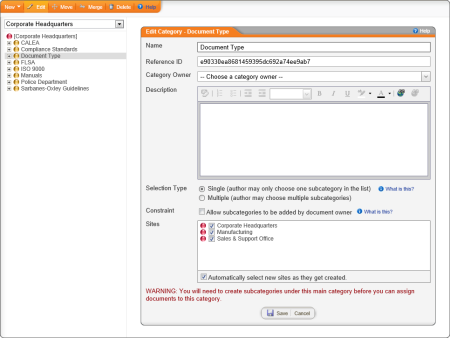 - Make changes to the category or subcategory properties. (See Adding a Category or Adding Subcategories Manually for details on the properties.)