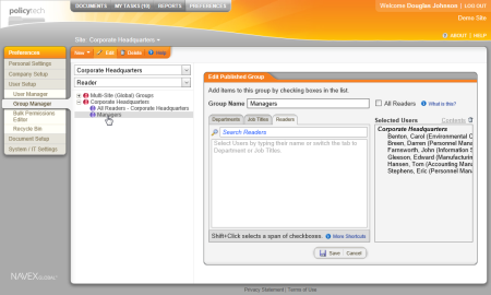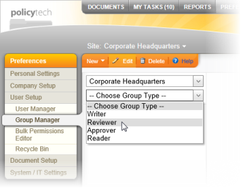 Editing a Writer, Reviewer, Approver, or Reader Group