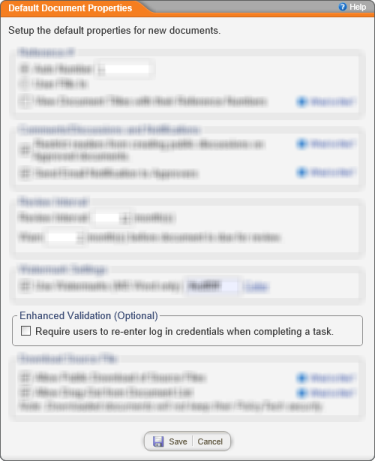 Select the Require users to re-enter log in credentials when completing a task check box to turn on enhanced validation.