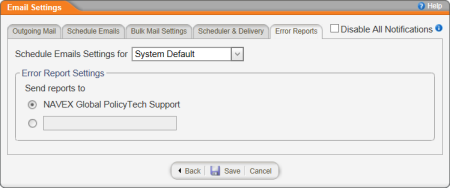 - Select NAVEX Global PolicyTech Support to have the error reports sent to the Client Support department at NAVEX Global.
