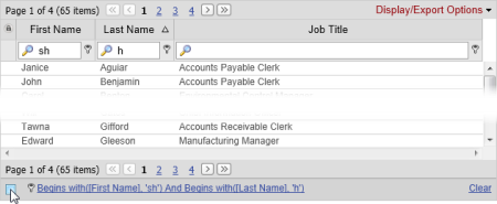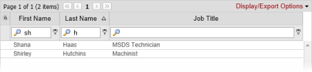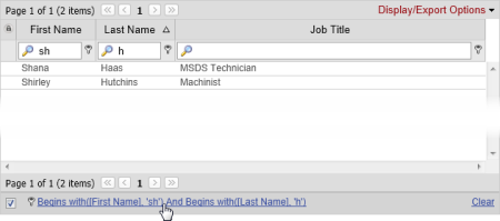 - (Optional) Repeat steps 1 and 2 to build on the current filter, further narrowing the user list. In the example below, the list is filtered to show only those users whose last names start with "h" and whose first names start with "sh."