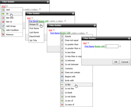 Note: It is not within the scope of this Help topic to teach how to build complex filters. The guidelines below only explain how to use the Filter Builder tool.