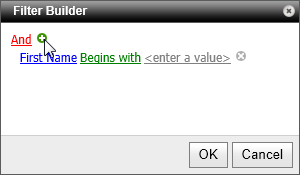 If no column filter currently exists, the Filter Builder opens and contains only an And operator.
