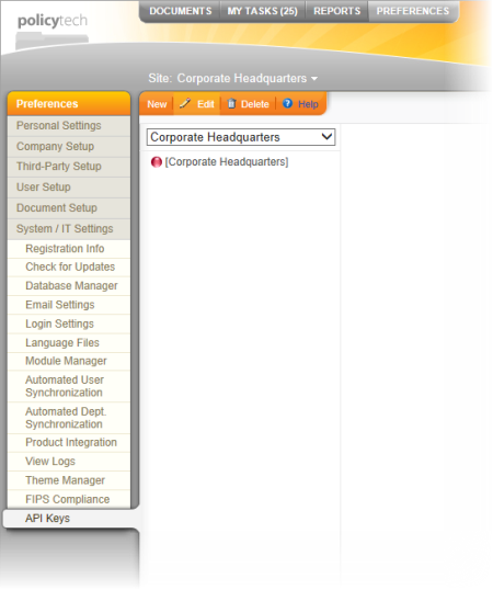 Make sure the protocol is https:// (secure). Replace [your PolicyTech URL] with the URL used to access your PolicyTech site. Replace [PolicyTech API key] with the key you created earlier in PolicyTech Preferences. Your completed URL should look similar to the following: