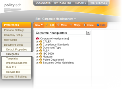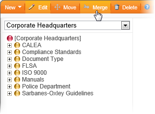 Important: A category that is merged into another is not placed in the Recycle Bin and can only be restored by restoring a backup database. Be sure to back up the PolicyTechâ„¢ database when prompted (see step 4 below).