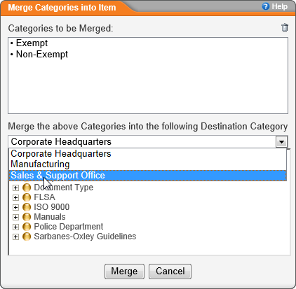 - (Conditional) If the merge was not successful, address the issues shown in the merge status message, and then try to merge the categories again.