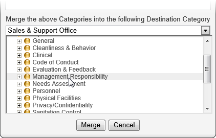 - Navigate to and click the category or subcategory you want the selected categories to be merged into.