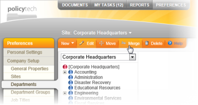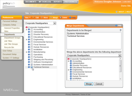 You are here: Topics by User Interface Area > For Document Control Administrators > Preferences > Merging Departments