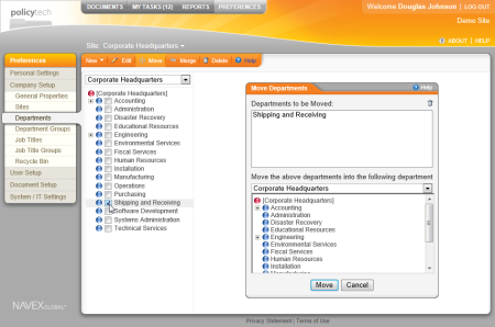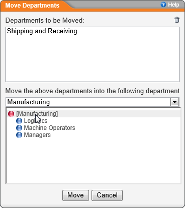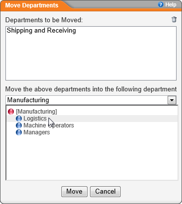- To move the selected department as a subdepartment, click the department that will contain the selected department.