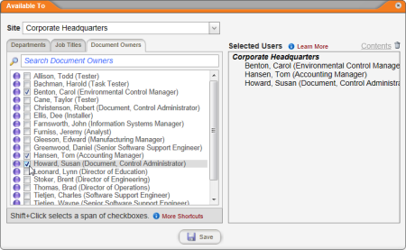 - In the Available To list, click Custom Selection (Document Owners), and then click Select Users.