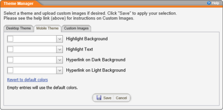- Click the Mobile Theme tab, and then make changes to any of the available settings.