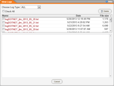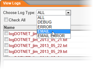 - All logs are shown by default. To display only one type of log, in the Choose Log Type list, click a type.