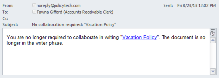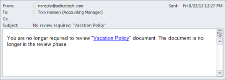 You are no longer required to [task action]* "[document title]". The document is no longer in the [task action]† phase.
