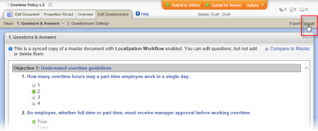 - Click Edit Questionnaire, and then, near the upper right corner of the window, click Import.