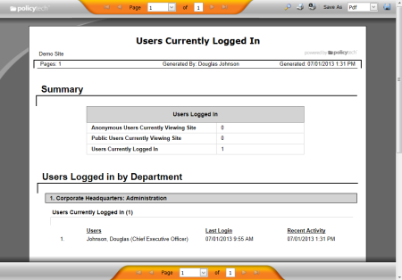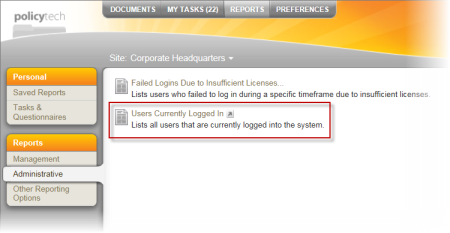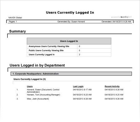 Shows which users are currently logged in to PolicyTechâ„¢.