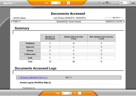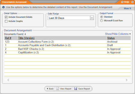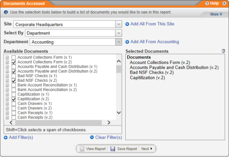 - Click Management, click Document Reports, and then click Documents Accessed.