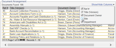 - To change the default report columns, click Show/Hide Columns, and then click to clear a check box.