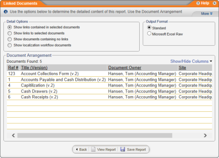 - Click Management, click Document Reports, and then click Linked Documents.