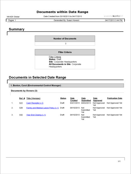 Report: Documents within Date Range