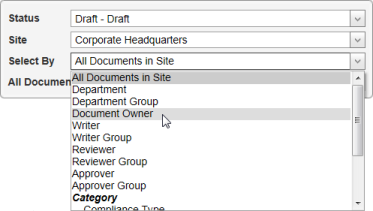 - In the Select By list, click an option for how you want to select documents within the selected status and site.