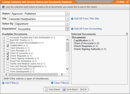 Note: Selecting Include next versoins without selecting With non-approved versions applies only if you select documents in the archived status that were replaced by a newer version.