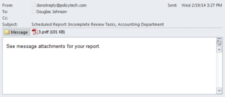 An email similar to the one shown below will then be sent to at each "send" occurrence in the set schedule. Open the attachment to view the report