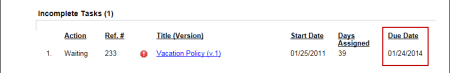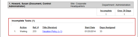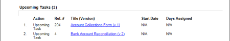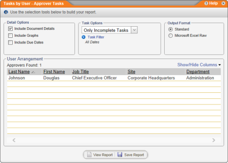 If you select Incomplete Tasks with Upcoming Levels, information will be shown about any approval tasks you have not yet received notification for. These could be tasks for documents that have not yet reached the approval status or tasks for documents currently in approval but that have not yet reached your assigned approval level.