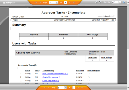 Note: You will only see the task reports for the document roles you've been assigned.